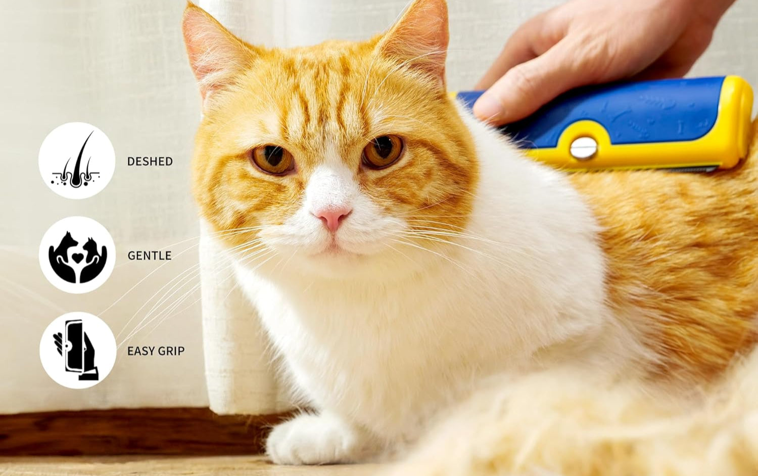PetPog Grooming & Deshedding Brush 2.0 Blue-Yellow